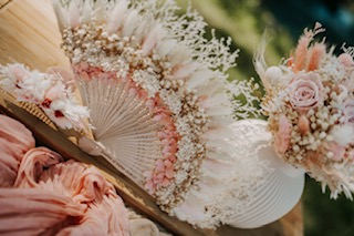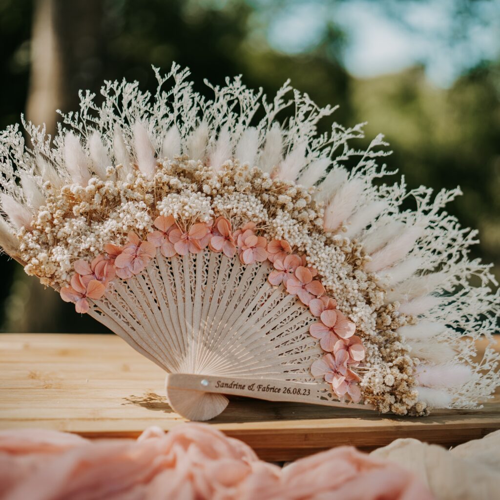 Original et raffiné, le bouquet éventail est une alternative élégante au bouquet de mariée traditionnel. Il apporte une touche unique et sophistiquée à votre tenue.