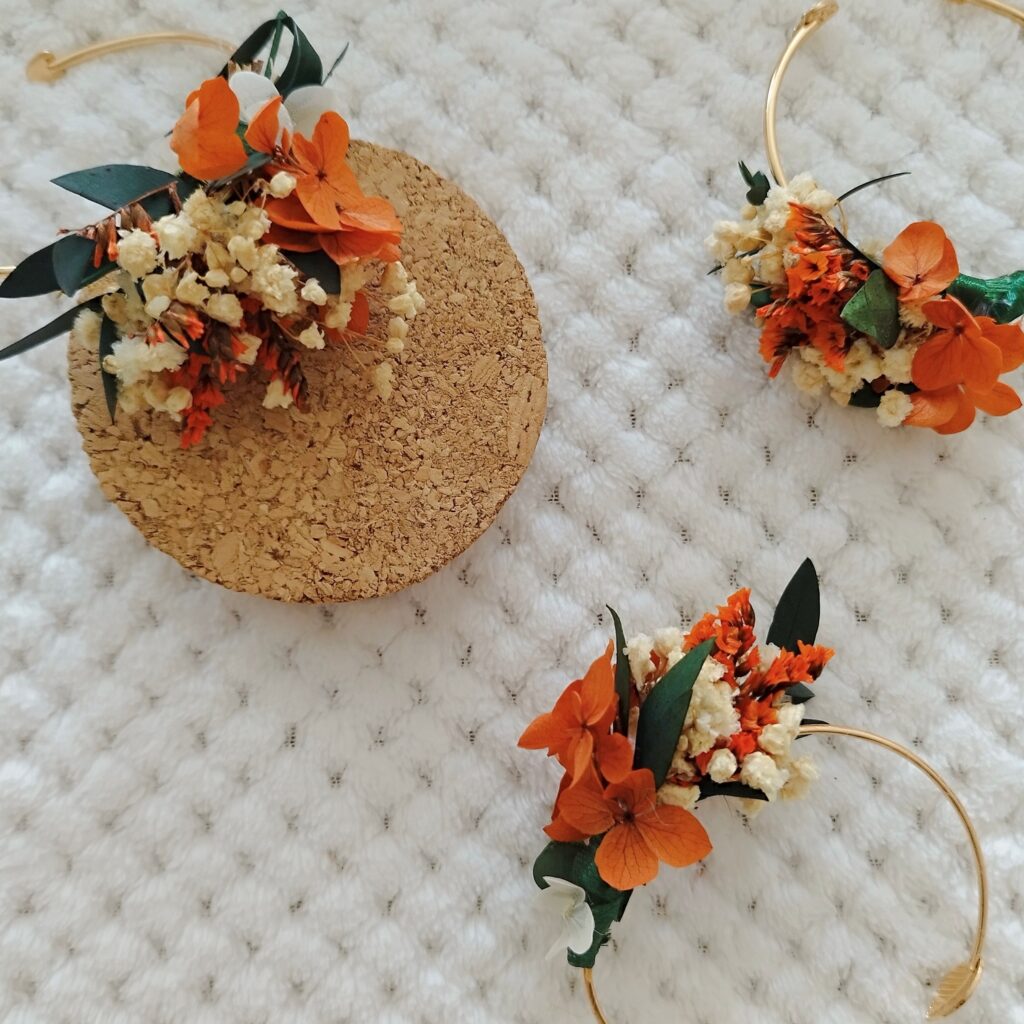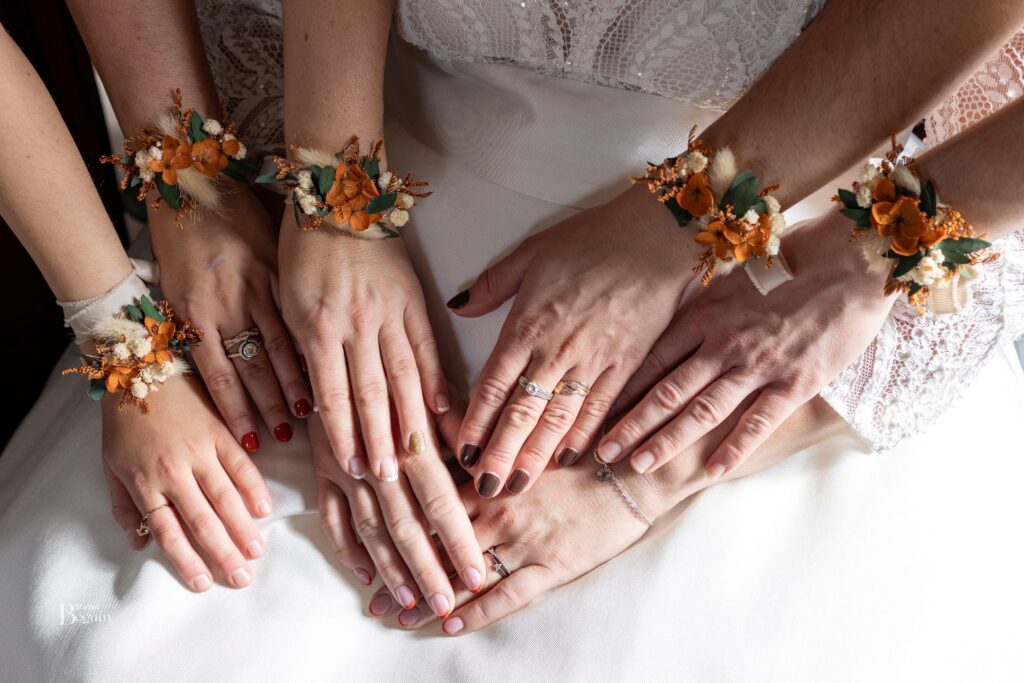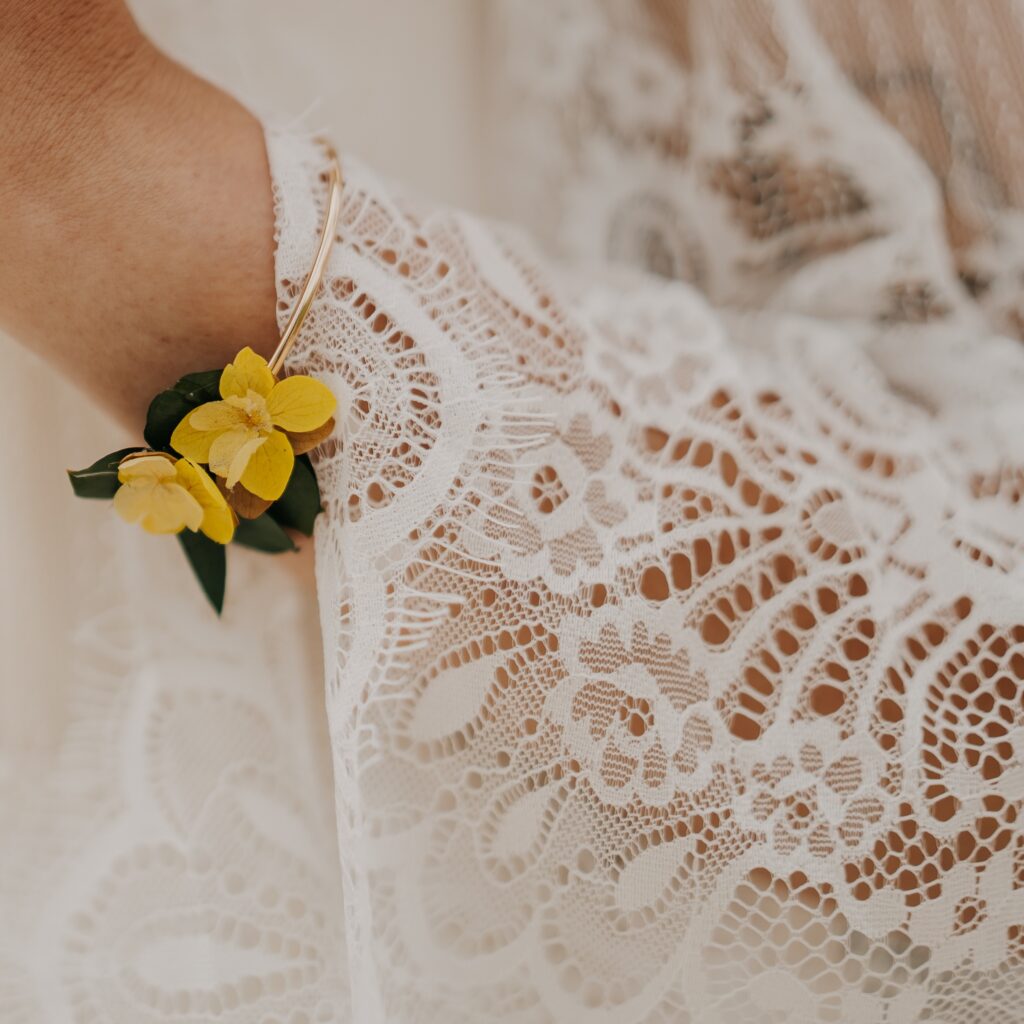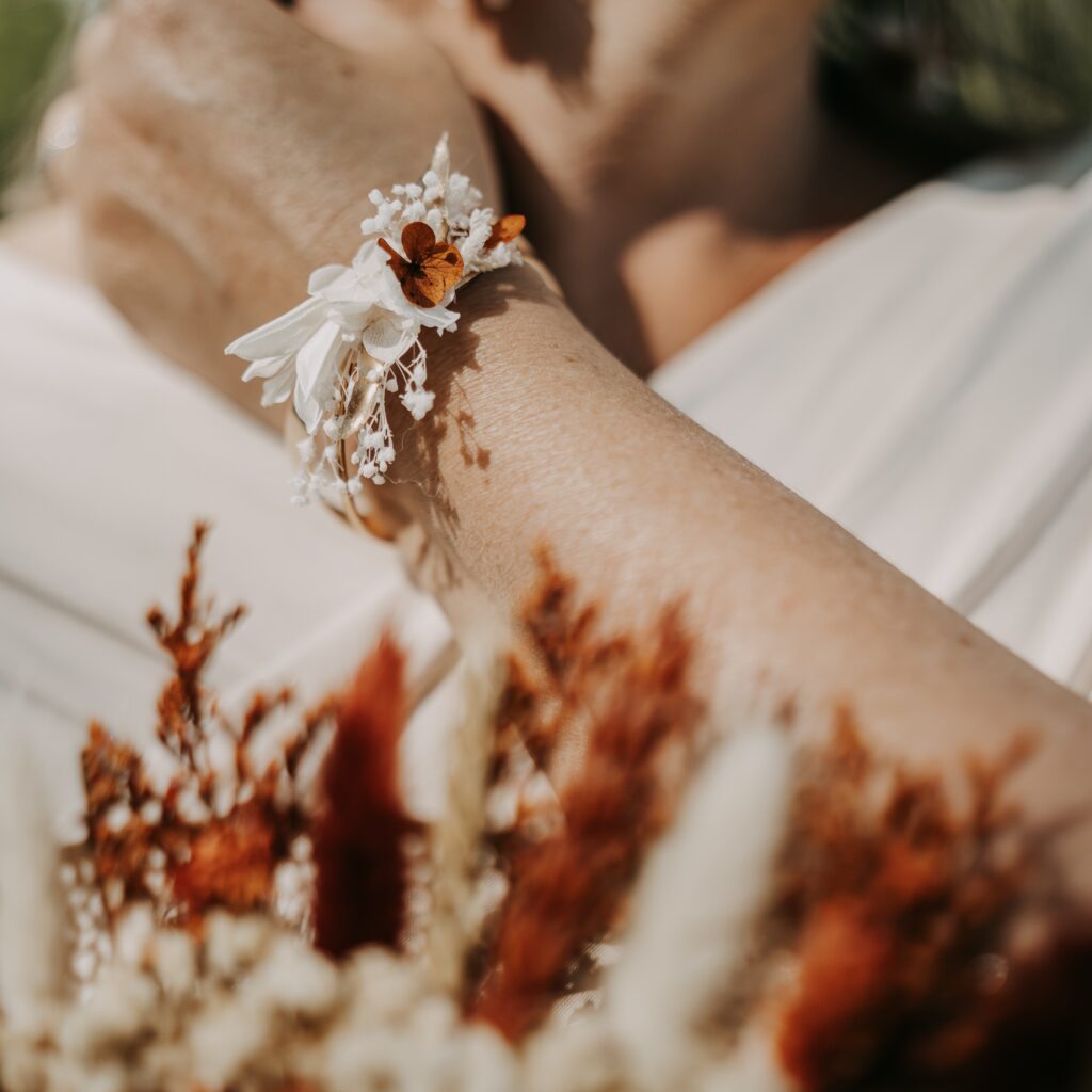 Des bracelets fleuris pour un mariage plein de douceur et d’harmonie.
