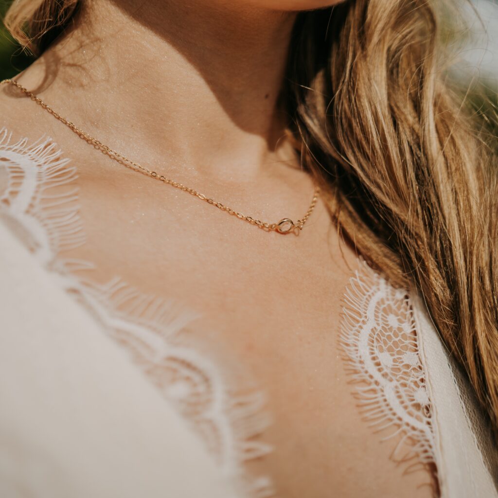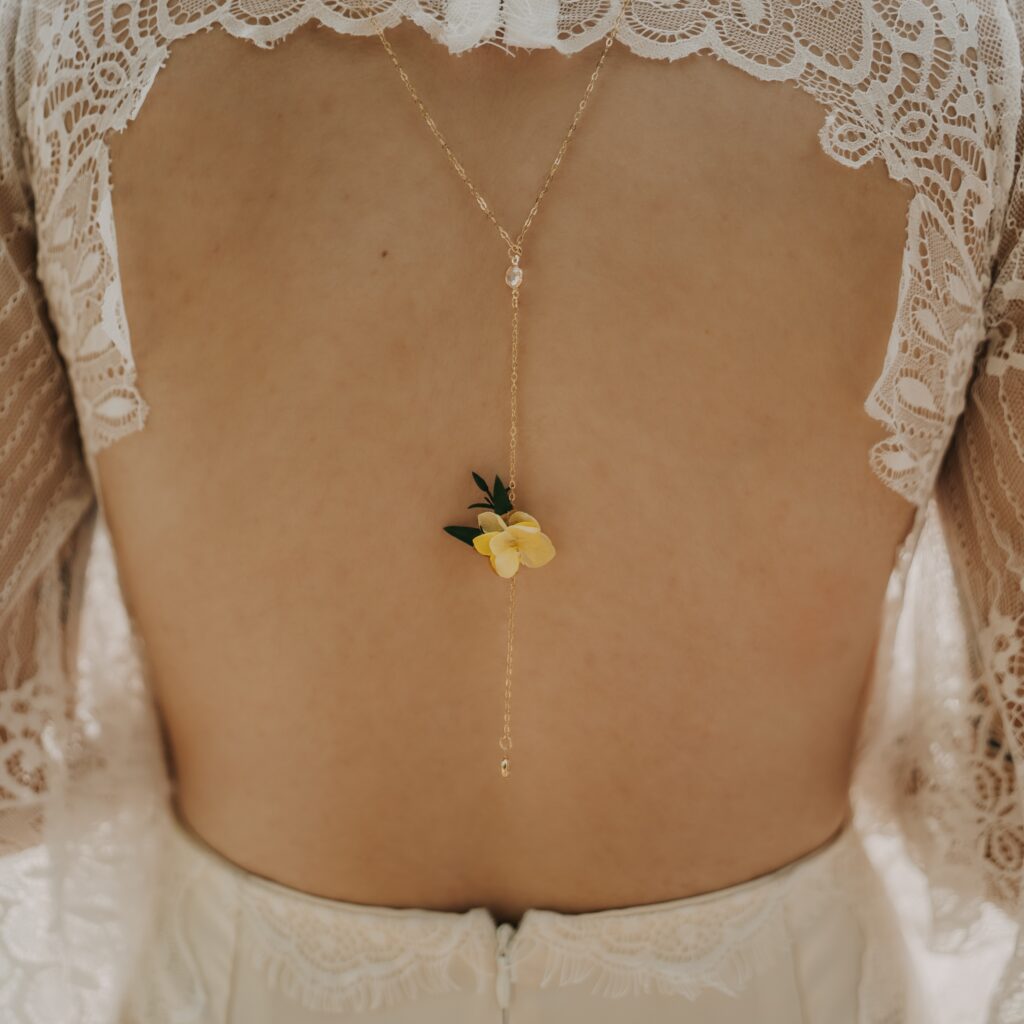 Les colliers de dos habillent subtilement les silhouettes avec élégance.