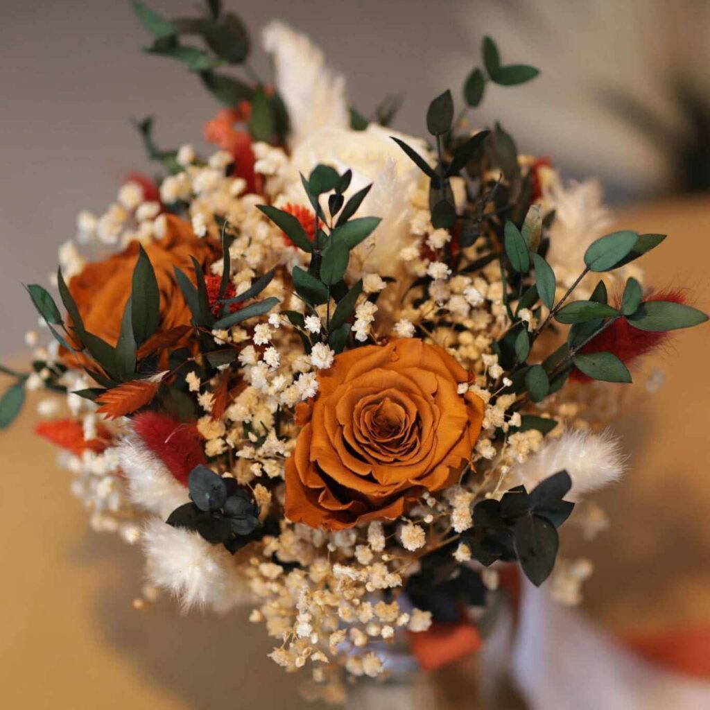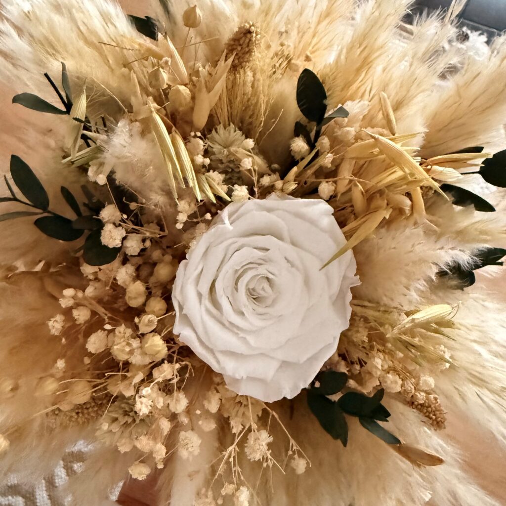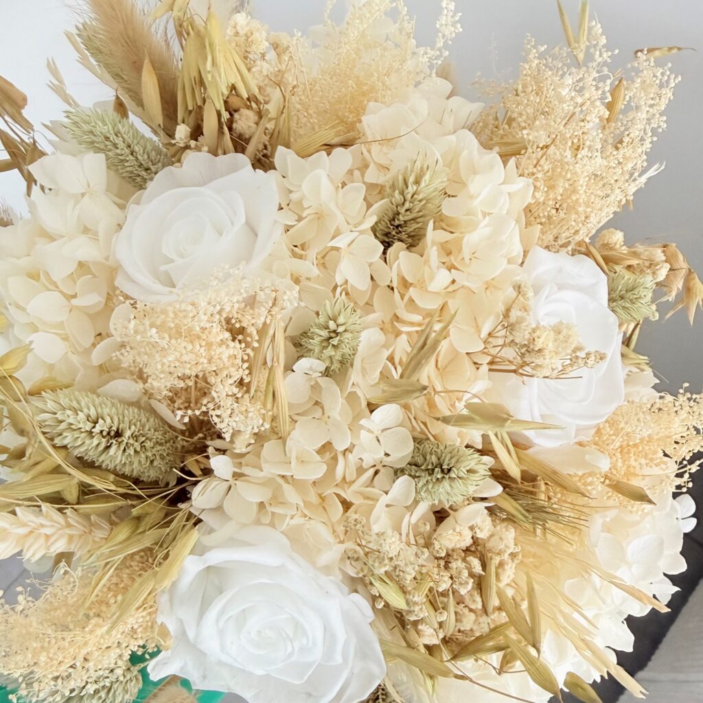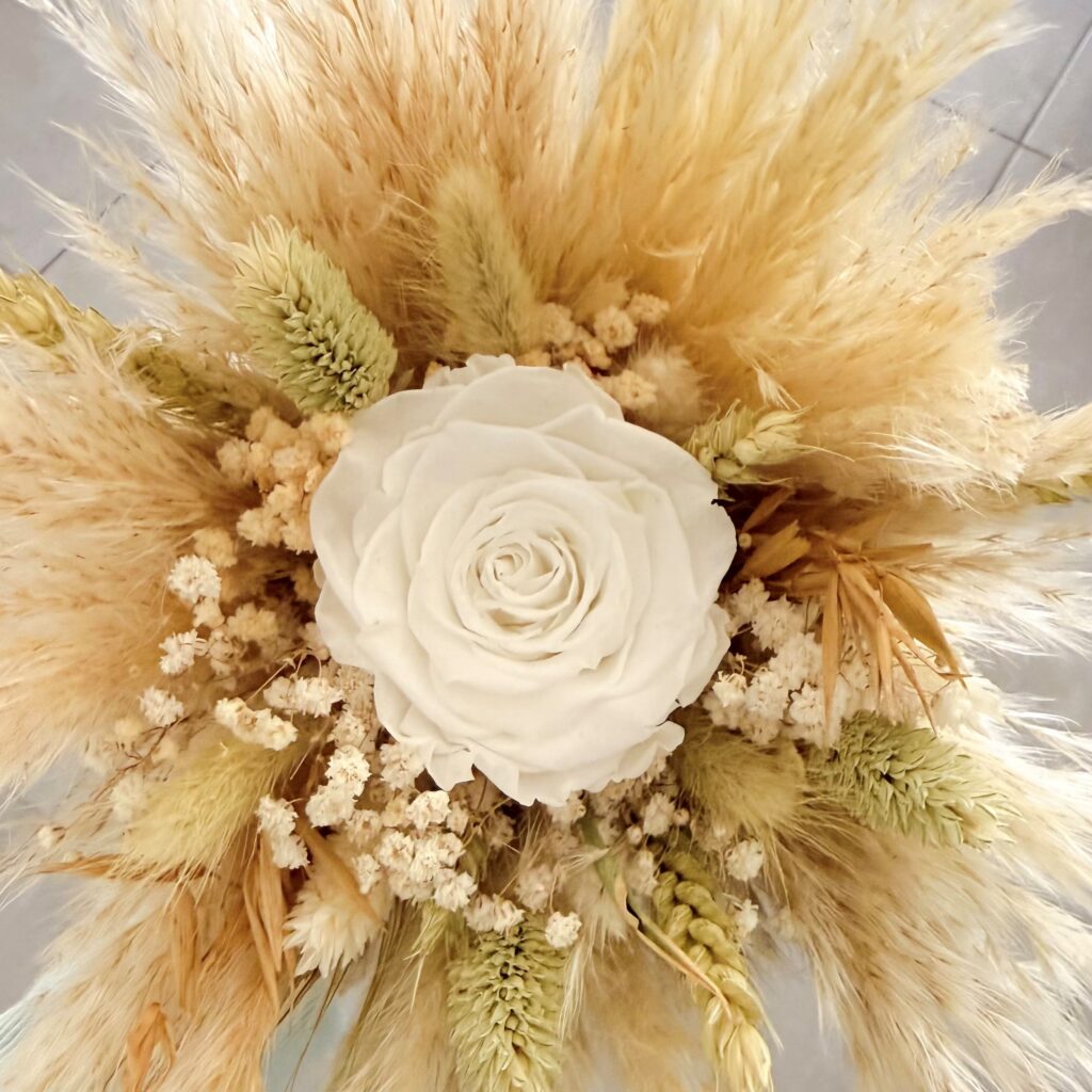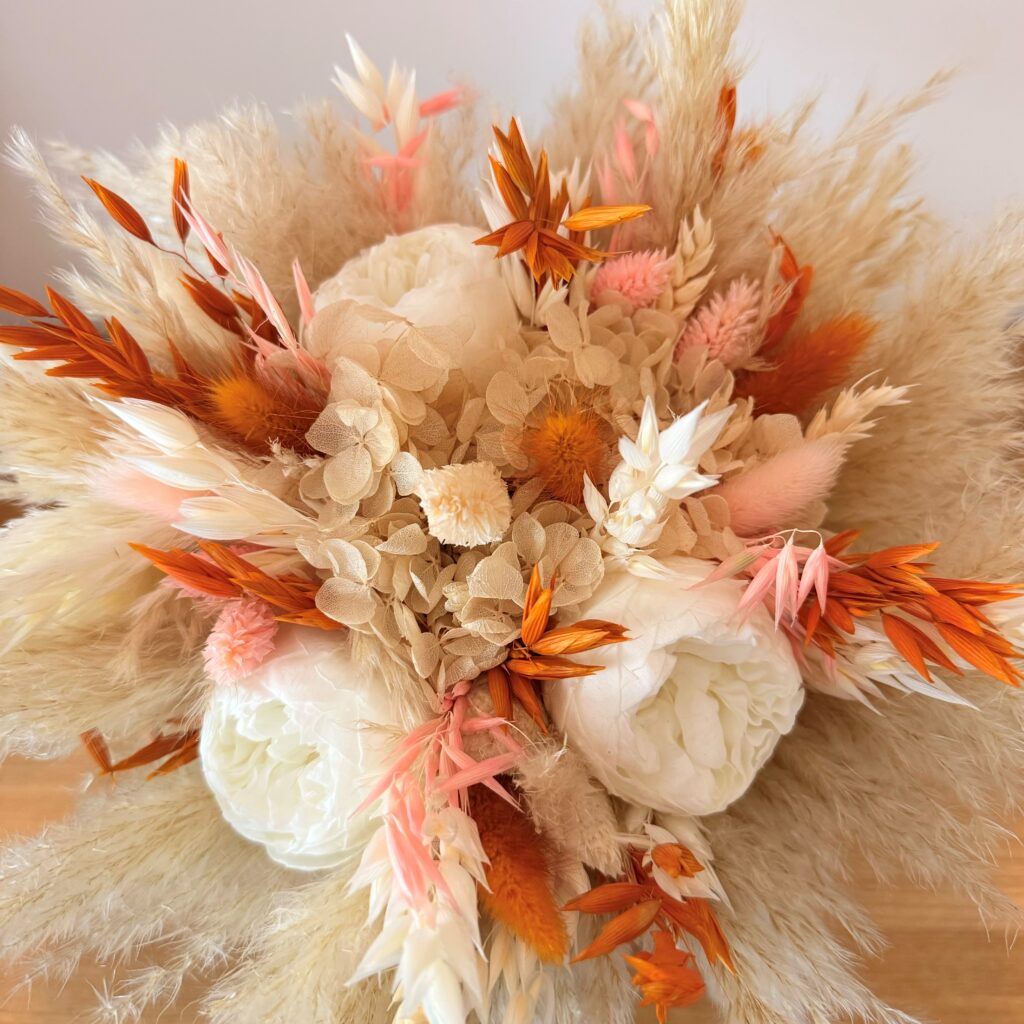 Apportez une touche d’élégance naturelle à votre réception avec des centres de table en fleurs séchées pour mariage. Pensées pour sublimer votre décoration, les créations florales allient charme bohème, raffinement et durabilité.